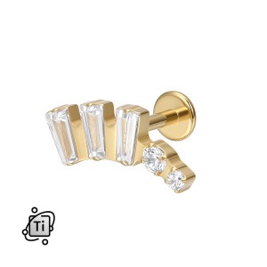 Labret tytanowy z kryształkami o szlifie bagietkowym - złoty