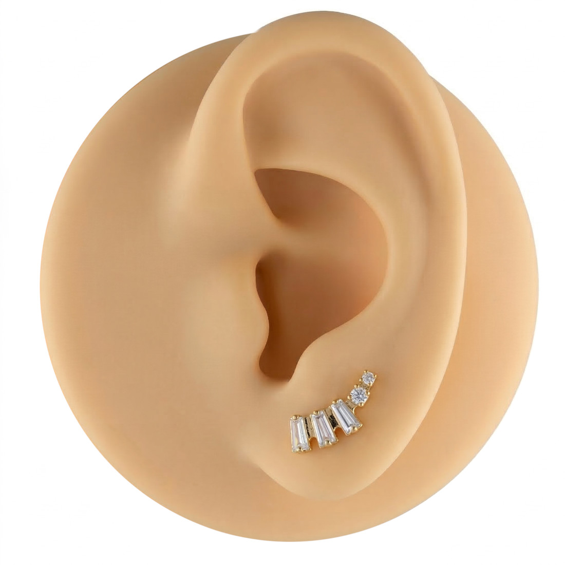 Biżuteria łączy w sobie nowoczesny design z geometrycznym porządkiem, dzięki czemu prezentuje się elegancko i estetycznie. Ze względu na swój kształt i profil, kolczyk najlepiej sprawdzi się w przekłuciach chrząstki ucha, takich jak helix, flat czy conch, a także w płatku ucha. Jest to odpowiedni wybór dla osób szukających subtelnego, ale wyraźnego akcentu dekoracyjnego, który pasuje zarówno do codziennych stylizacji, jak i na bardziej formalne okazje.