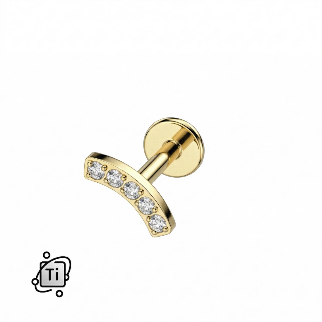 Labret tytanowy z łukiem z kryształków Crystal - złoty
