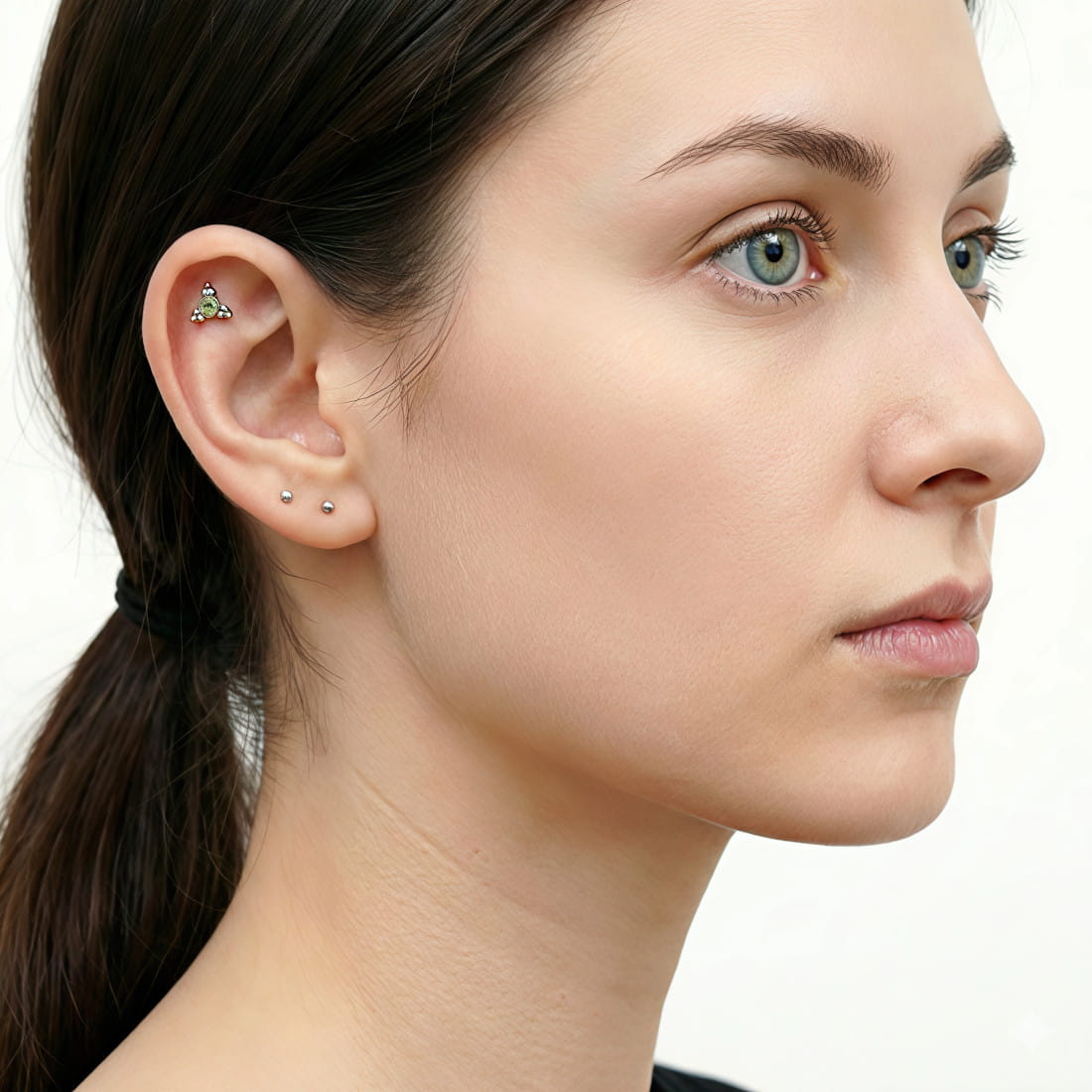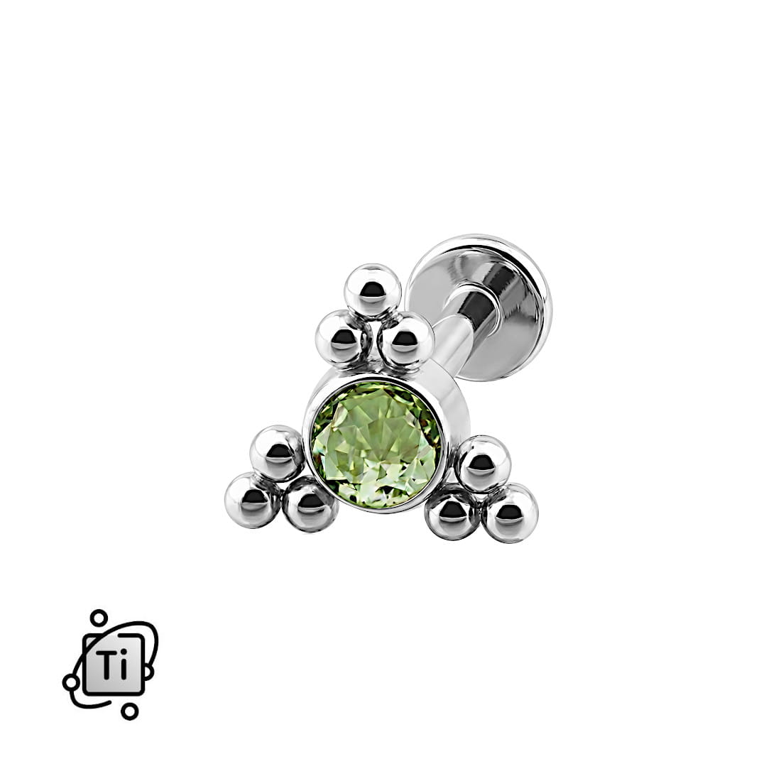 Labret tytanowy z oliwkową cyrkonią - srebrny