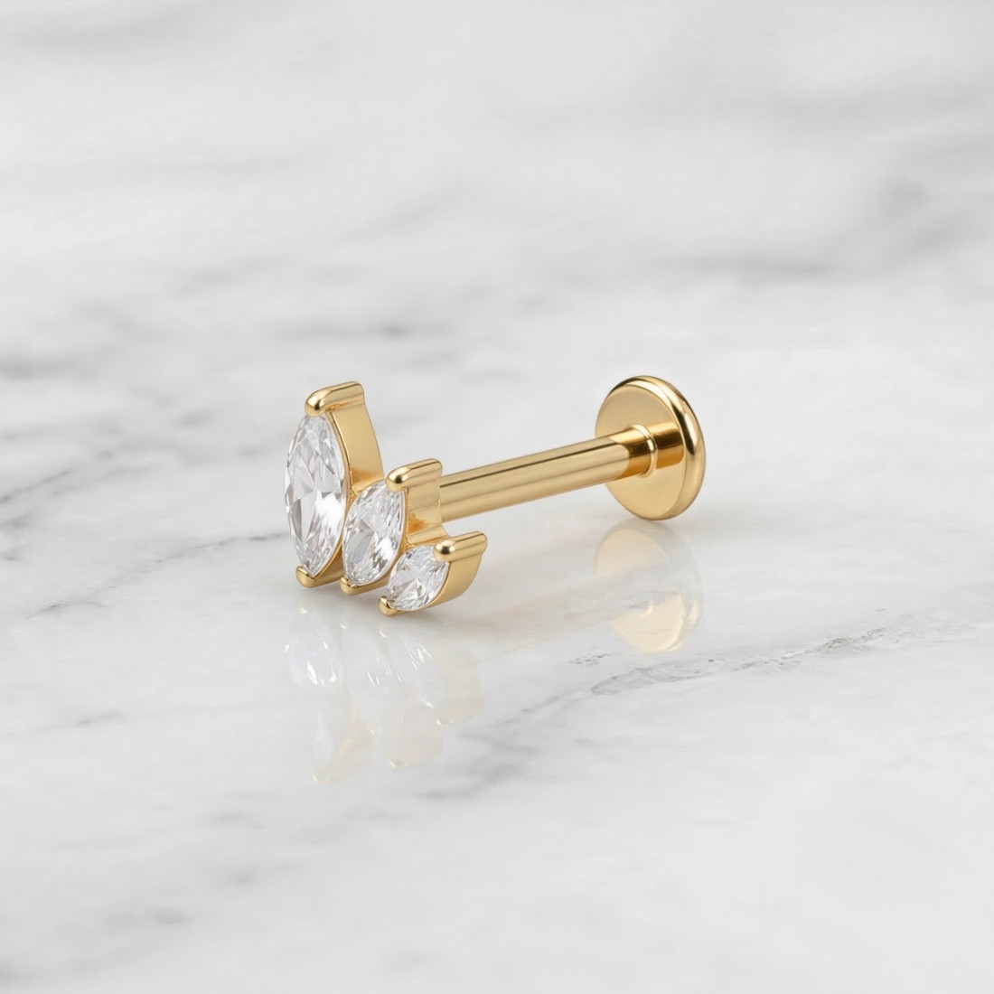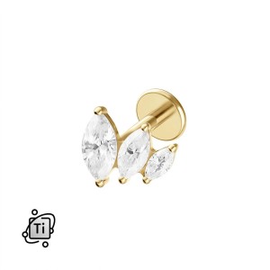 Labret tytanowy z trzema cyrkoniami marquise - złoty