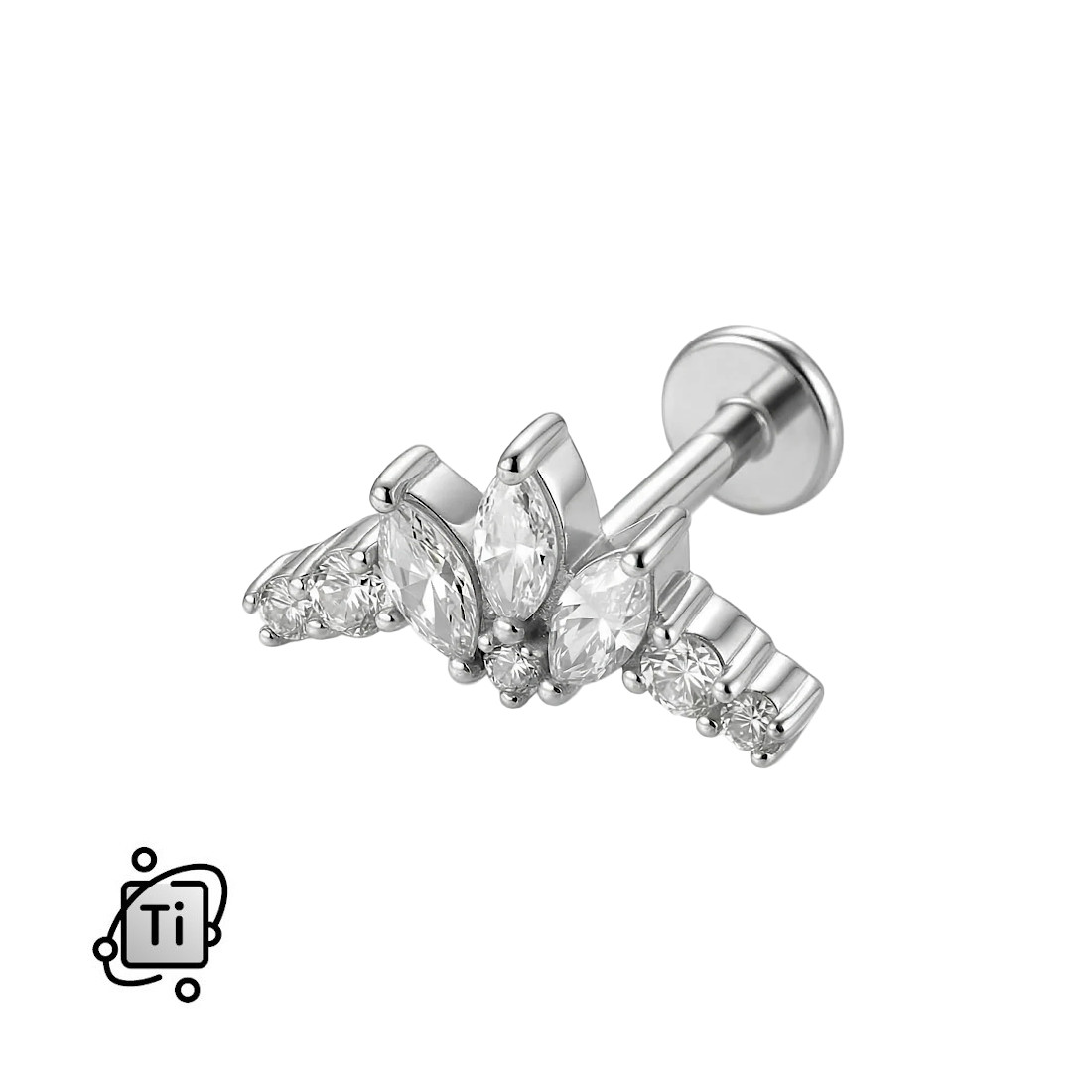 Labret tytanowy z wachlarzem cyrkonii - srebrny