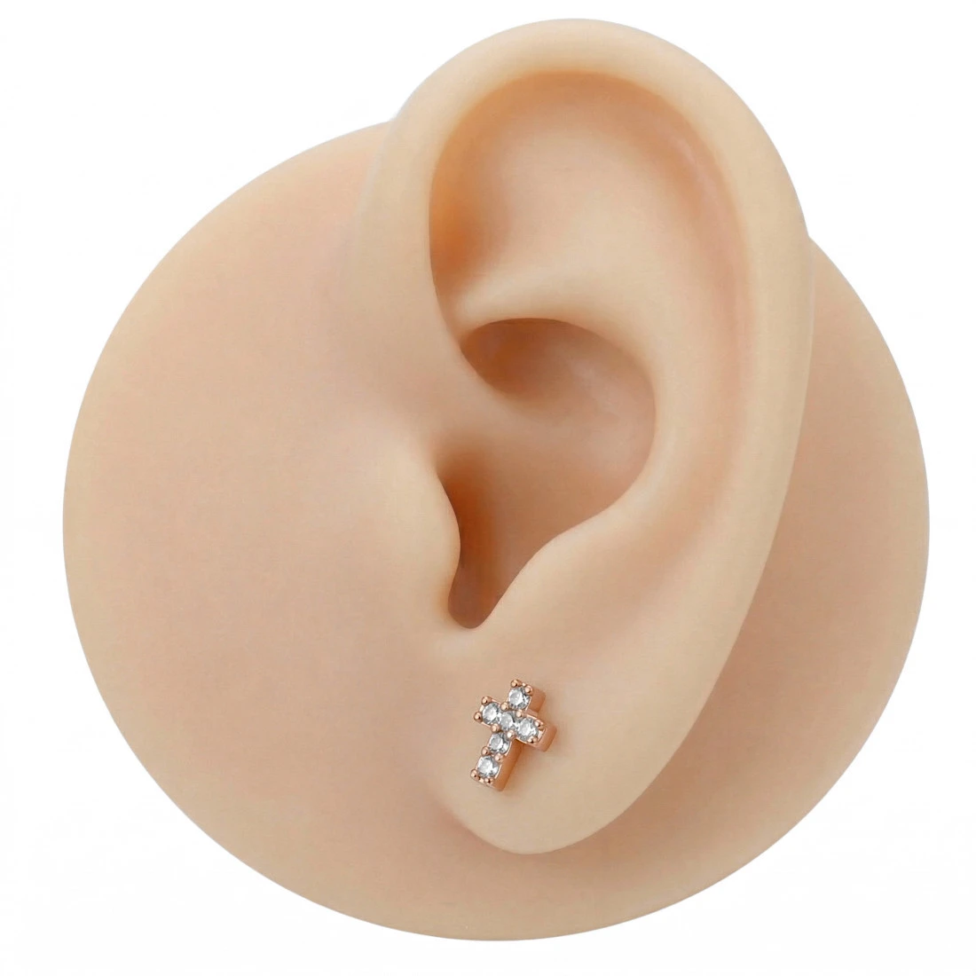 Labret ze stali szlachetnej KRZYŻYK z cyrkoniami - różowe złoto