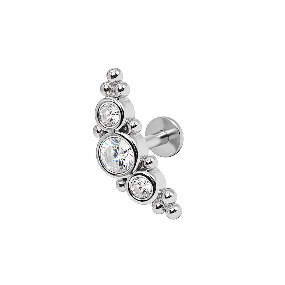Dekoracyjny kolczyk do ciała wykonany z wysokiej jakości, hipoalergicznej stali szlachetnej w naturalnym srebrnym kolorze.