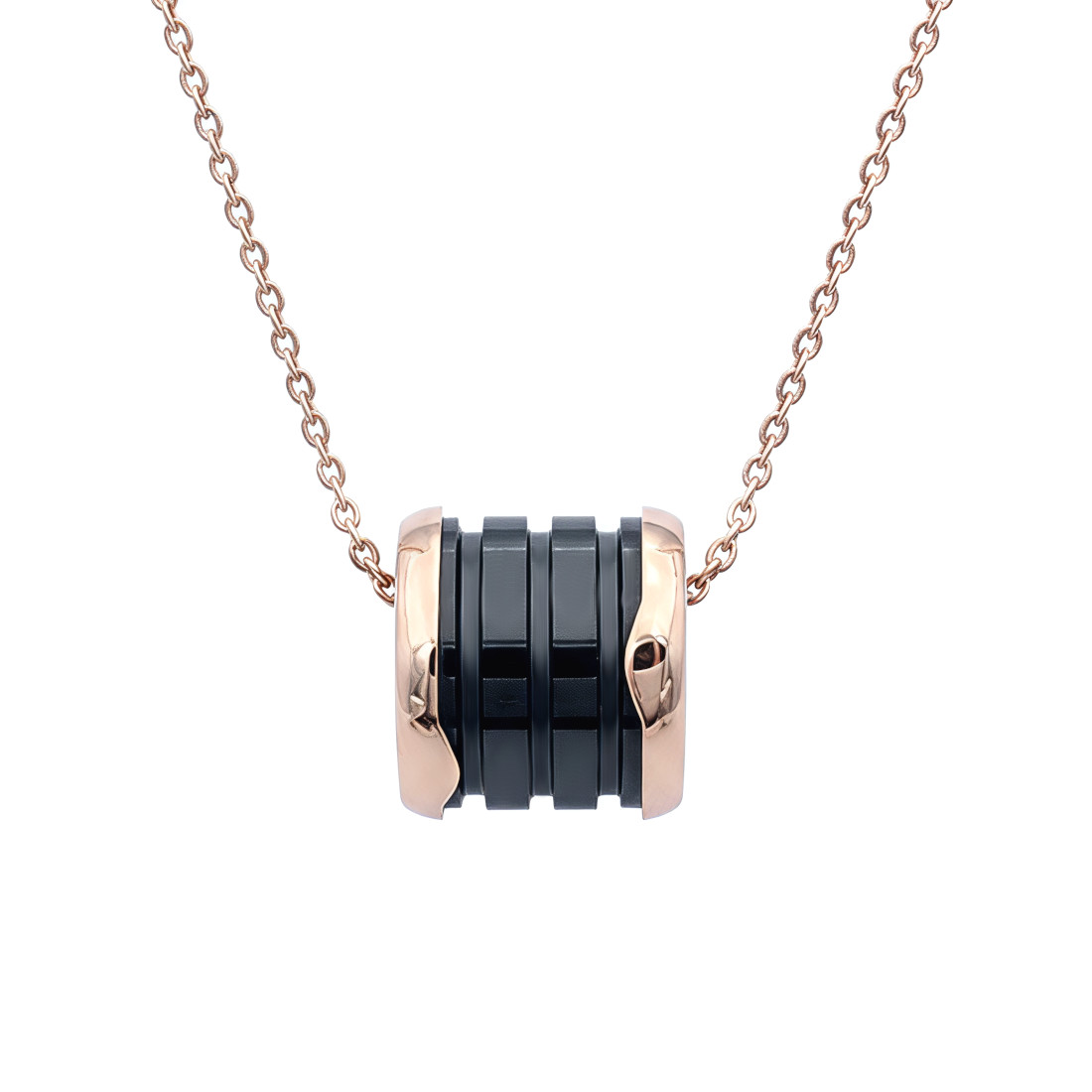 Połączenie ceramiki z różowym złotem nadaje naszyjnikowi wyrafinowany i modny wygląd. Kontrast materiałów i kolorów jest subtelny, ale przyciąga wzrok.