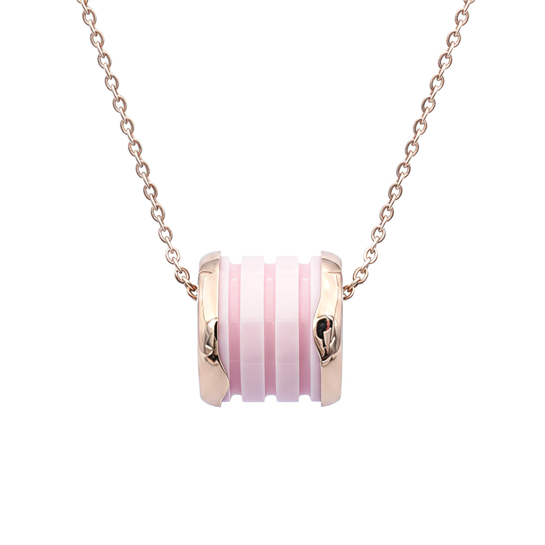 Połączenie ceramiki z różowym złotem nadaje naszyjnikowi wyrafinowany i modny wygląd. Kontrast materiałów i kolorów jest subtelny, ale przyciąga wzrok.