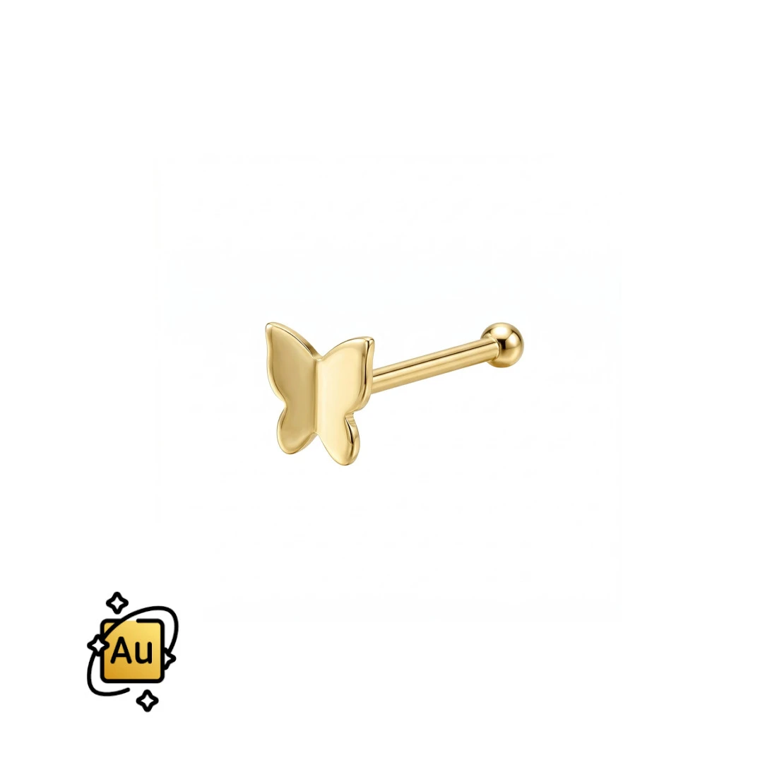 Nostril prosty pin z motylkiem ze Złota 14K - złoty