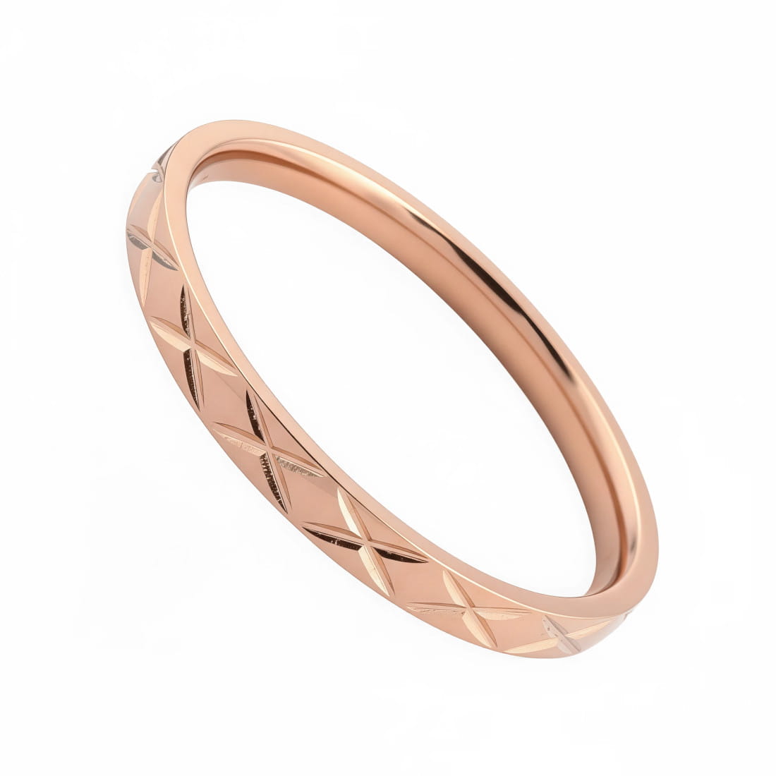 Subtelna obrączka wykonana z polerowanej stali szlachetnej, co gwarantuje trwałość i jest bezpieczne dla skóry. Kolorowa powłoka została naniesiona trwałą metodą PVD (Physical Vapour Deposition). W poprzek całej obrączki biegnie delikatny ozdobny fasetowny wzór.