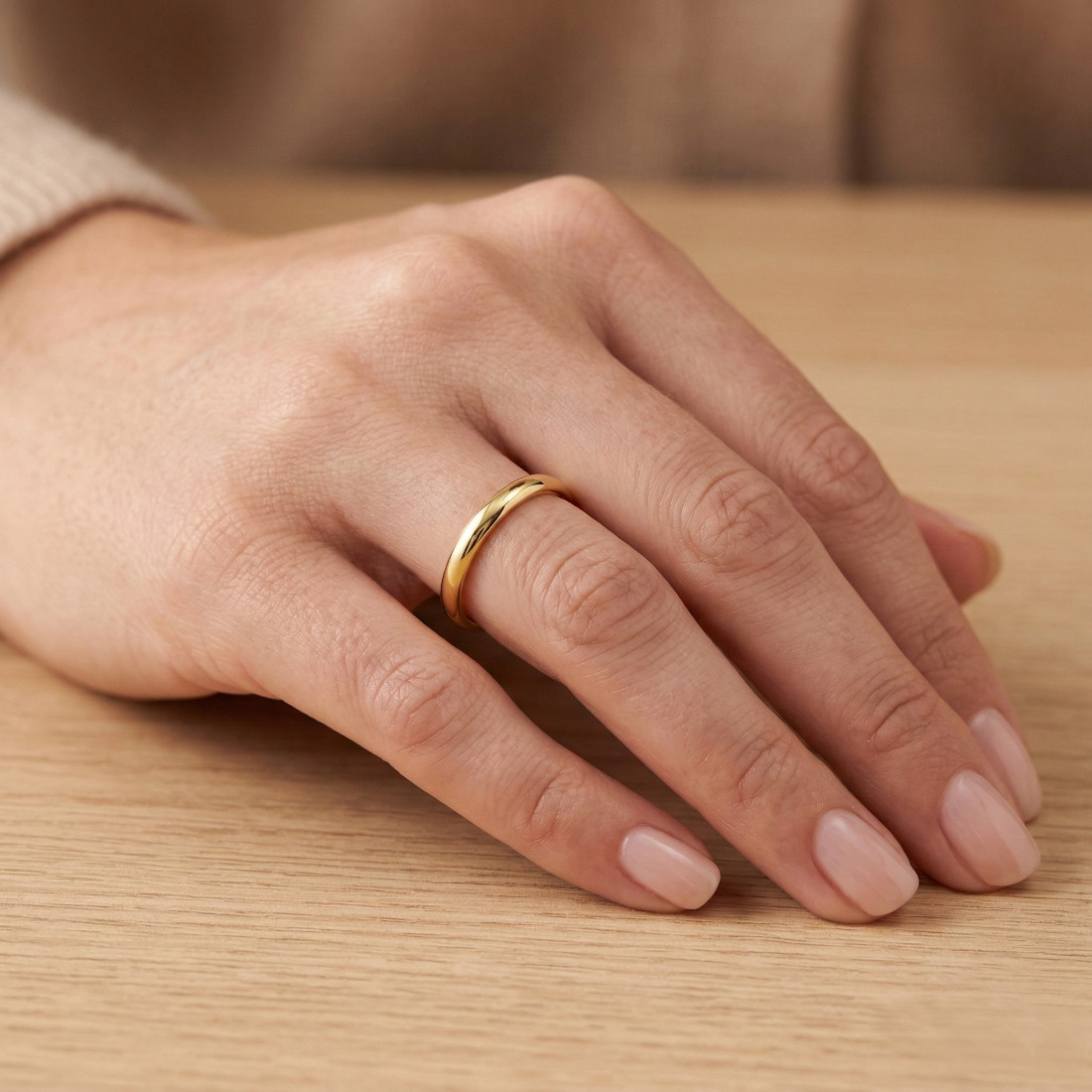 Klasyczna obrączka o półokrągłym profilu wykonana z wysokiej jakości stali szlachetnej. Materiał ten charakteryzuje się trwałością, odpornością na zarysowania oraz właściwościami hipoalergicznymi, dzięki czemu jest bezpieczny dla osób o wrażliwej skórze. Złoty kolor naniesiono metodą PVD (Physical Vapor Deposition). Jest to nowoczesna technologia napylania próżniowego, która gwarantuje wysoką trwałość powłoki, odporność na ścieranie oraz chroni powierzchnię przed korozją i utratą blasku podczas codziennego użytkowania.
