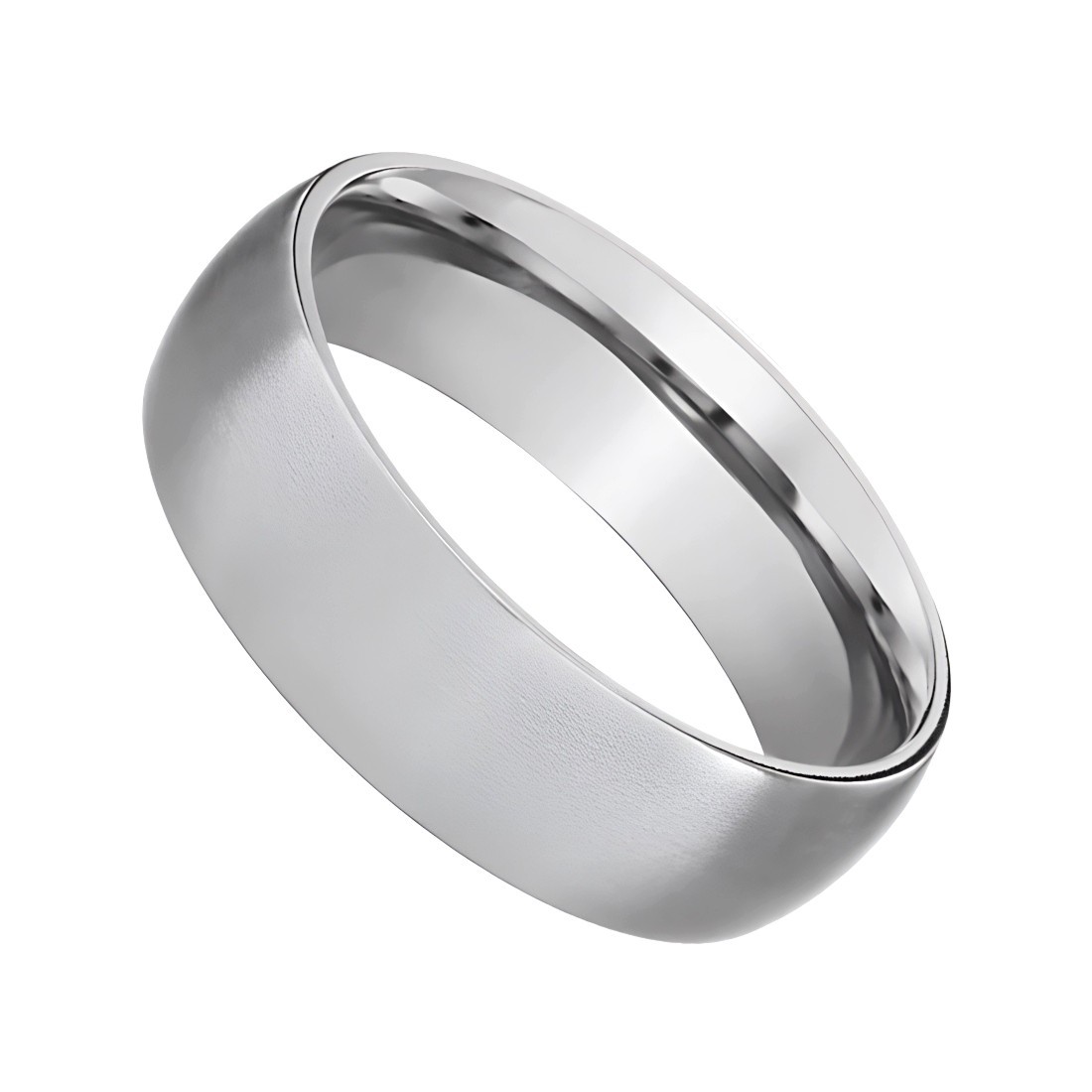 Srebrna obrączka średniej szerokości wykonana ze stali szlachetnej, charakteryzującej się wyjątkową odpornością na uszkodzenia mechaniczne, zarysowania oraz procesy utleniania. Materiał ten jest w pełni hipoalergiczny, co sprawia, że biżuteria nie powoduje podrażnień i jest bezpieczna dla osób o wrażliwej skórze. Stal zachowuje swój naturalny, chłodny odcień przez długi czas użytkowania, nie czernieje i nie wymaga skomplikowanych zabiegów pielęgnacyjnych.