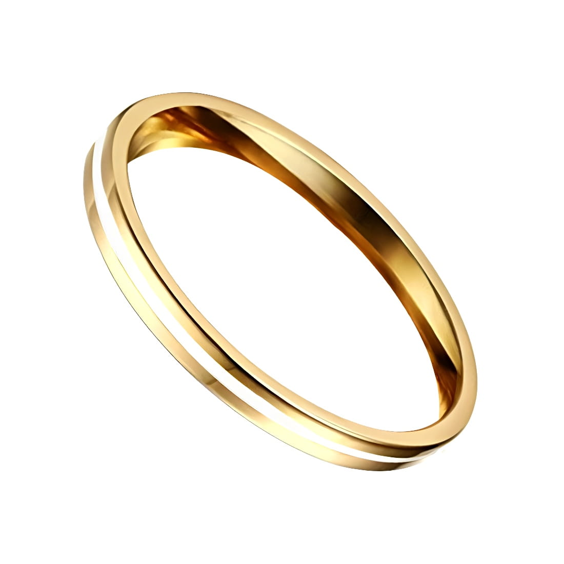 Cienka złota obrączka wykonana ze stali chirurgicznej. Jest to materiał trwały, twardy i odporny na uszkodzenia mechaniczne oraz korozję. Stal jest hipoalergiczna, co czyni ją bezpieczną dla osób o wrażliwej skórze. Złoty kolor naniesiono metodą PVD (Physical Vapor Deposition), która zapewnia wysoką odporność powłoki na ścieranie i odbarwienia. Pozwala to na długotrwałe zachowanie estetycznego wyglądu biżuterii.