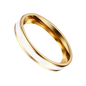 Obrączka stalowa 4 mm z emaliowaną wstawką ecru - złota