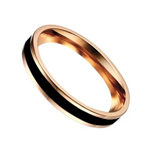 Obrączka stalowa 4 mm z emaliowanym czarnym pasem - różowe złoto