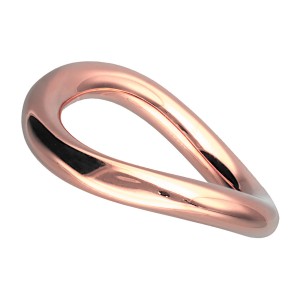 Nowoczesna i wyrazista obrączka o organicznym kształcie. Wykonana z polerowanej stali szlachetnej w kolorze różowego złota uzyskanym metodą PVD. Obrączka ma grubą, zaokrągloną formę, która delikatnie faluje. Jej gładka i lśniąca powierzchnia pięknie odbija światło.