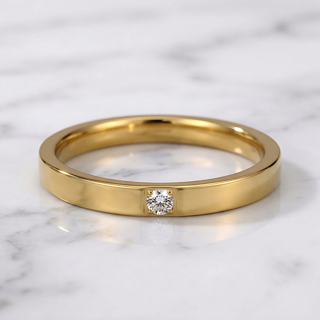 Prosta, pozbawiona zdobień forma oraz kwadratowe wykończenie krawędzi, nadaje obrączce nowoczesnego charakteru.