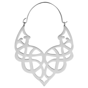 Część ozdobna kolczyka to duża zawieszka o wyraźnie geometrycznym i symbolicznym wzorze. Jego główną część stanowi skomplikowany splot inspirowany celtyckimi lub plemiennymi węzłami. Kształt ozdobnej części jest unikalny – rozszerza się ku górze, tworząc dwie symetryczne, zaokrąglone "skrzydła" wypełnione węzłowym wzorem, a następnie zwęża się ku dołowi, zakończony ostrym czubkiem. Cały wzór węzła jest misternie przeplatany w ramach tego kształtu.