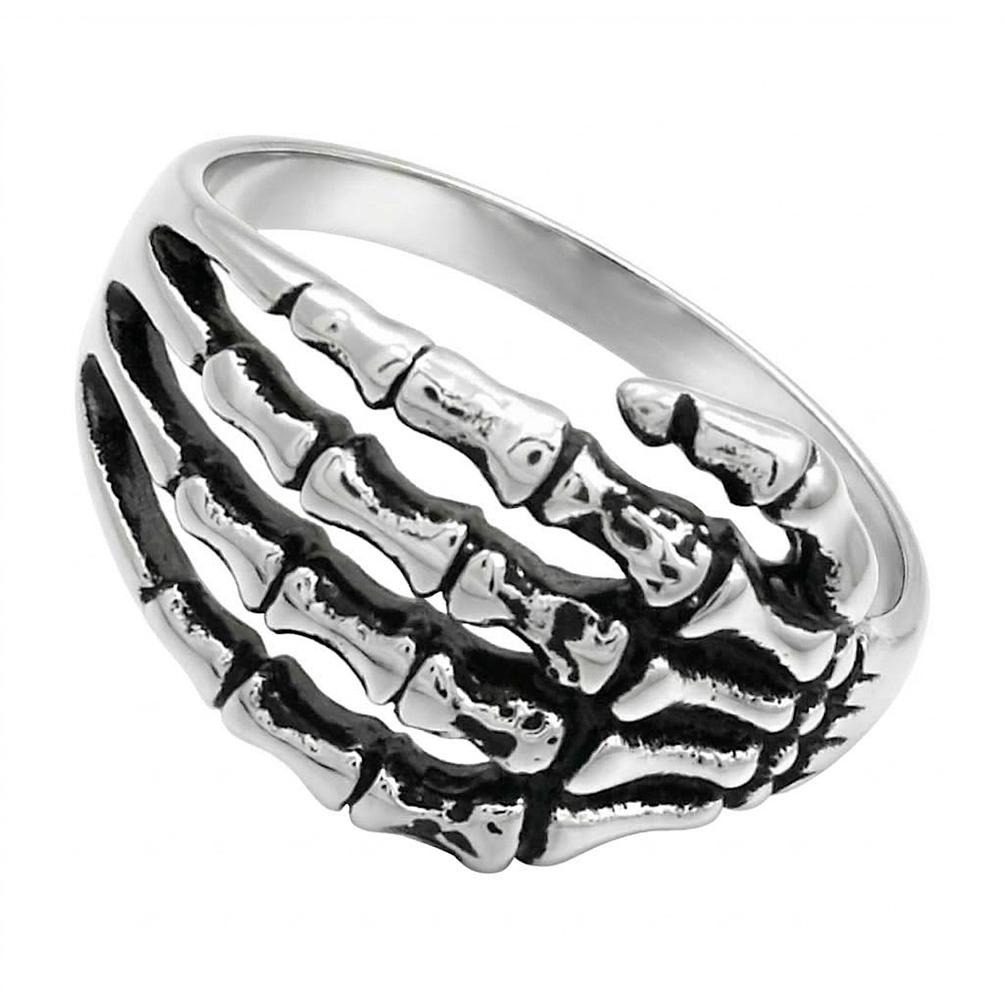 Pierścień stalowy DŁOŃ SZKIELETU - srebrny