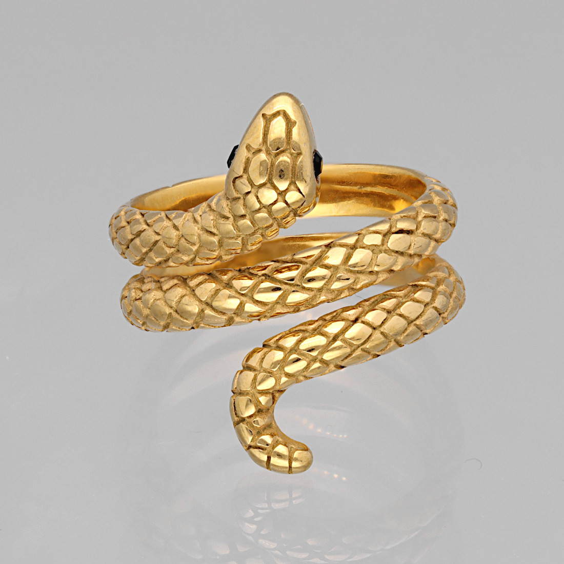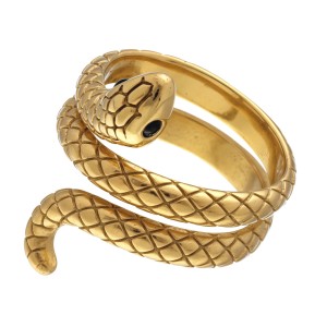 Pierścień ma formę, misternie wyrzeźbionego węża, który owija się spiralnie wokół palca. Wąż ma uniesioną głowę, która, tak jak całe ciało jest bogato zdobiona detalami, co nadaje mu realistyczny wygląd. W miejscach oczu znajdują się małe czarne cyrkonie.