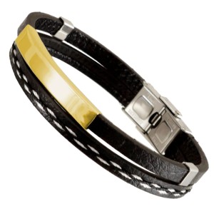 Skórzana podwójna bransoletka z przeszyciem i złotą blaszką