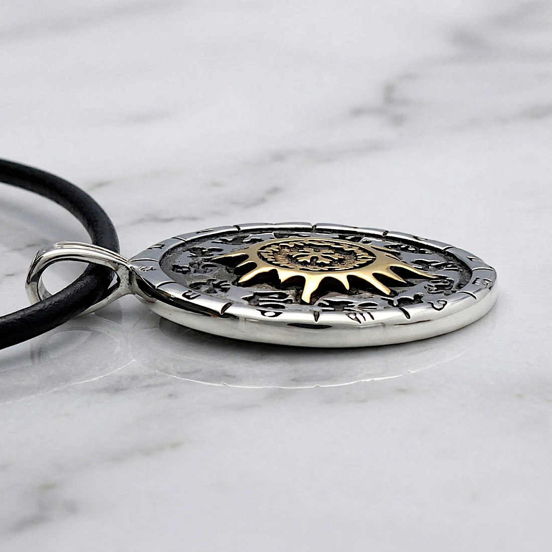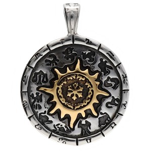 Stalowy medalion SŁONECZNY ZODIAK - srebrny