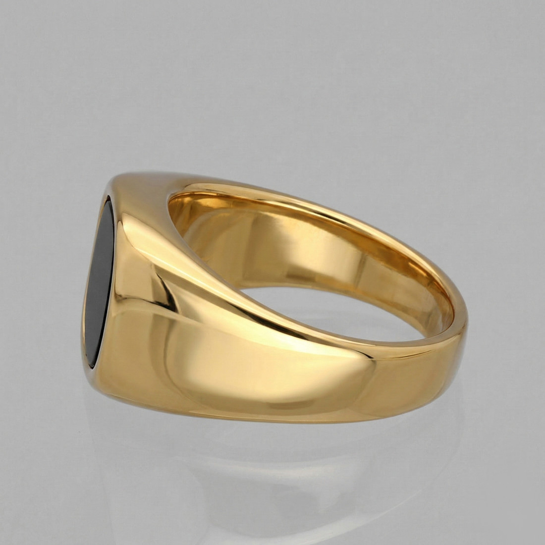 Sygnet klasyczny z czarnym oczkiem - złoty