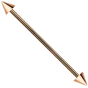 Klasyczna sztanga w kolorze różowego złota przeznaczona do przekłucia typu industrial, wykonana z wysokiej jakości stali chirurgicznej 316L. Materiał ten charakteryzuje się wyjątkową trwałością oraz odpornością na czynniki zewnętrzne, co sprawia, że biżuteria nie rdzewieje i nie traci swojego pierwotnego blasku nawet przy codziennym użytkowaniu. Gładka, polerowana powierzchnia stali jest bezpieczna dla skóry i ułatwia utrzymanie odpowiedniej higieny miejsca przekłucia. Kolorowa powłoka uzyskana metodą PVD gwarantuje bardzo dużą twardość i odporność na ścieranie.