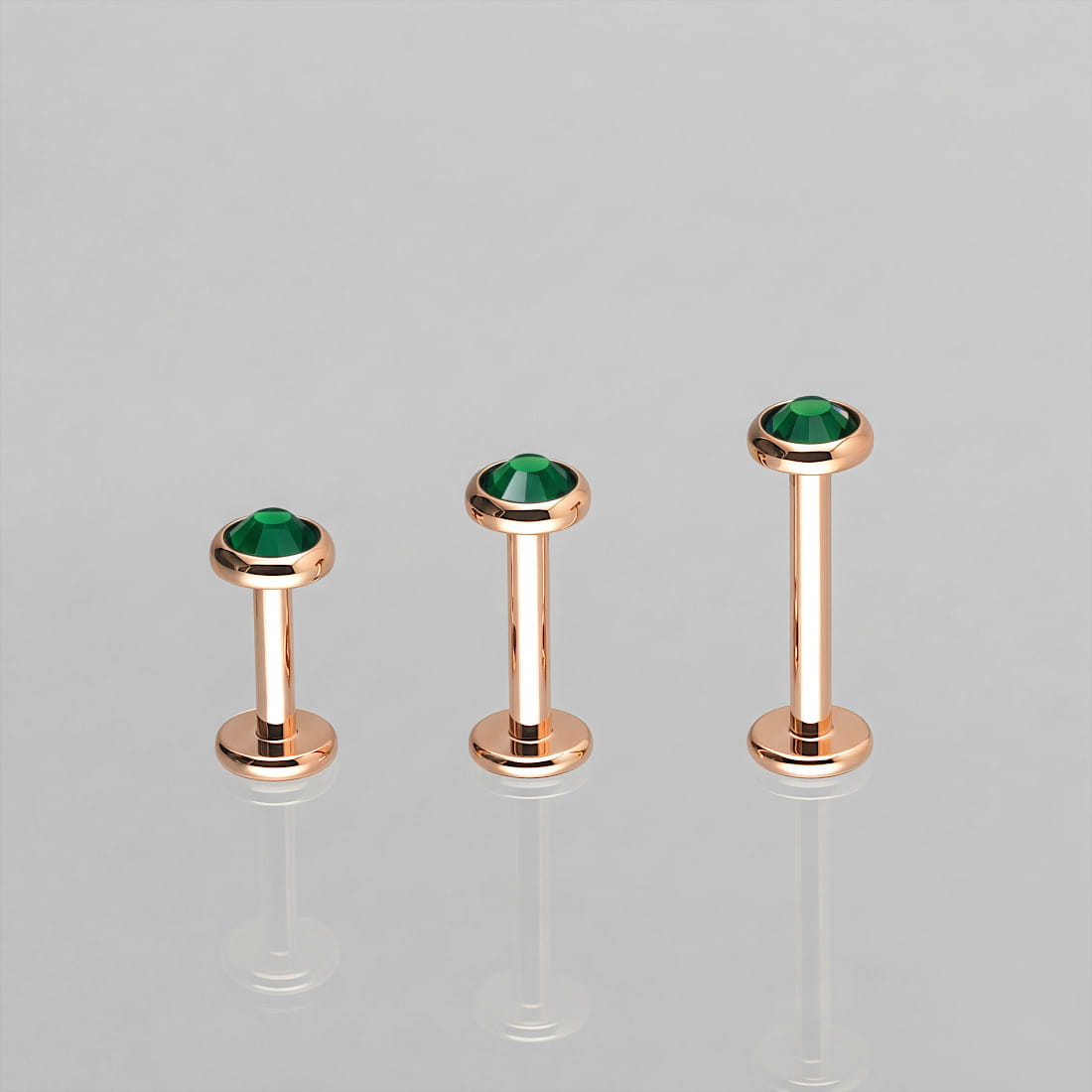 TLabret tytanowy INTERNAL z szmaragdową cyrkonią - różowe złoto