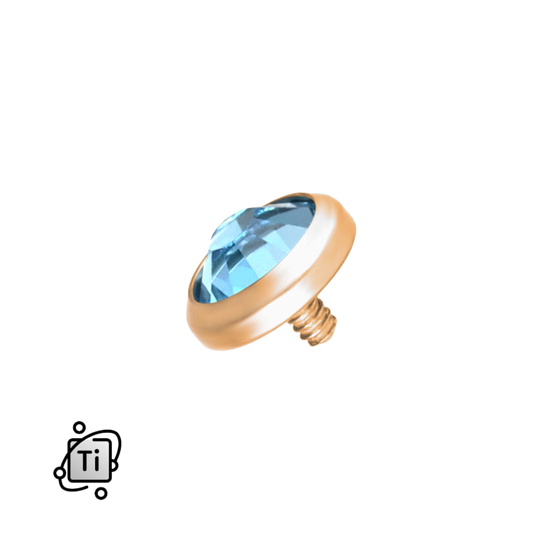 Top INTERNAL z błękitną cyrkonią z Tytanu G23 - różowe złoto