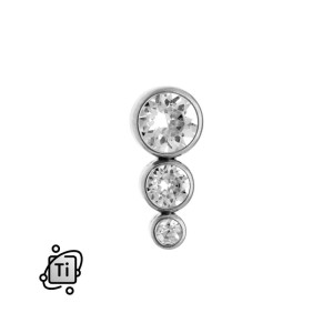 Prosta i efektowna nakrętka do mikrodermali, wykonana z cyrkonii Crystal i Tytanu G23, biokompatybilnego, hipoalergicznego i odpornego na korozję materiału, idealnego do implantów skórnych. Top ma formę trójstopniowej konstrukcji z połączonych ze sobą trzech okrągłych elementów. W każdym z elementów zakuta jest okrągła, szlifowana cyrkonia.