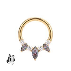 Tytanowe kółko clicker dwukolorowy z cyrkoniami marquise - złote