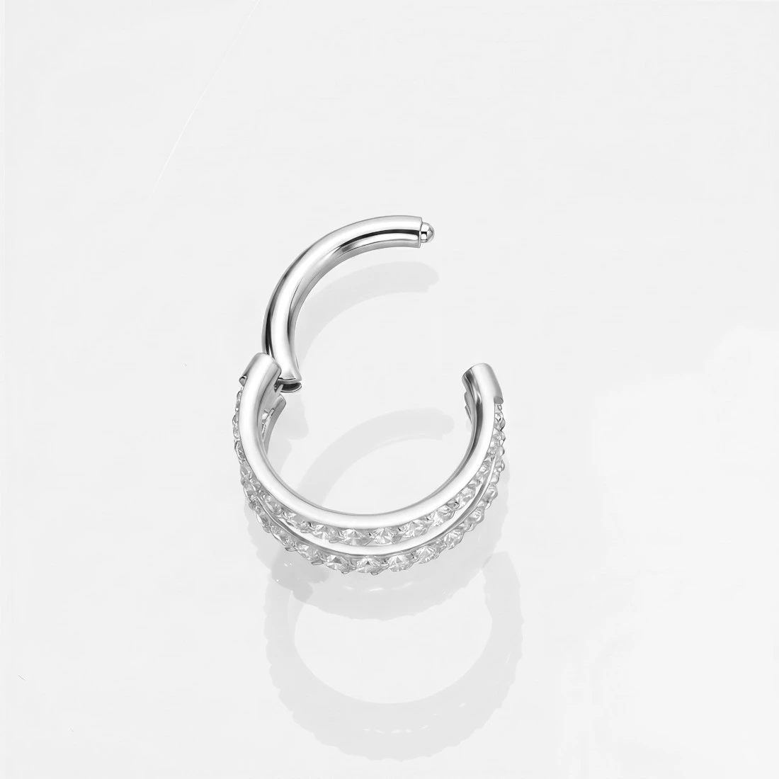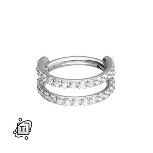 Tytanowe kółko clicker podwójne z rzędami cyrkonii - srebrne