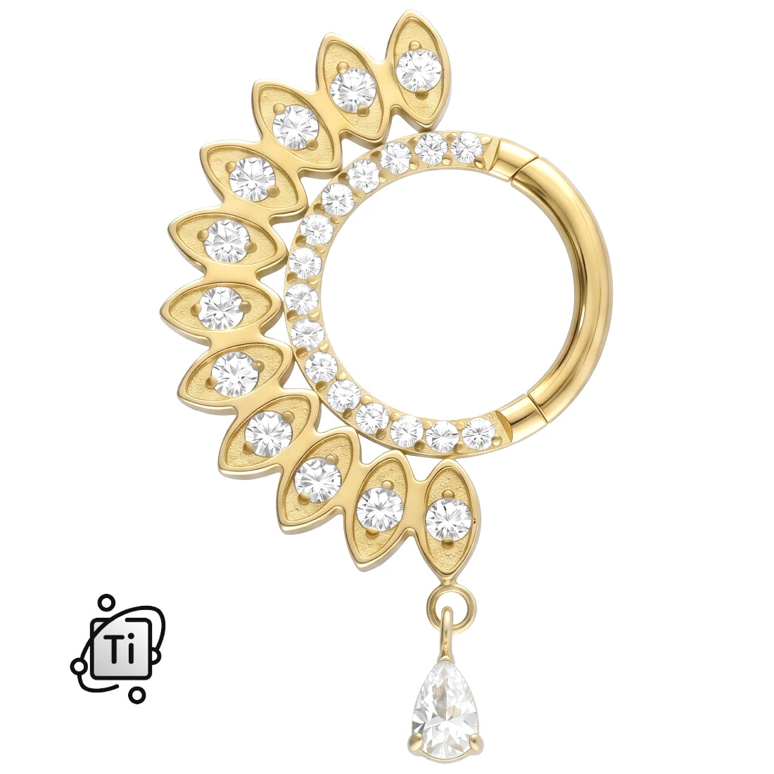 Tytanowe kółko clicker z cyrkoniami i zawieszką - złote