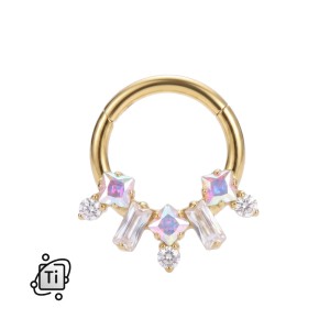Tytanowe kółko clicker z cyrkoniami o geometrycznych szlifach - złote