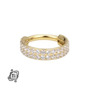 Tytanowe kółko clicker z dwoma rzędami cyrkonii - złote