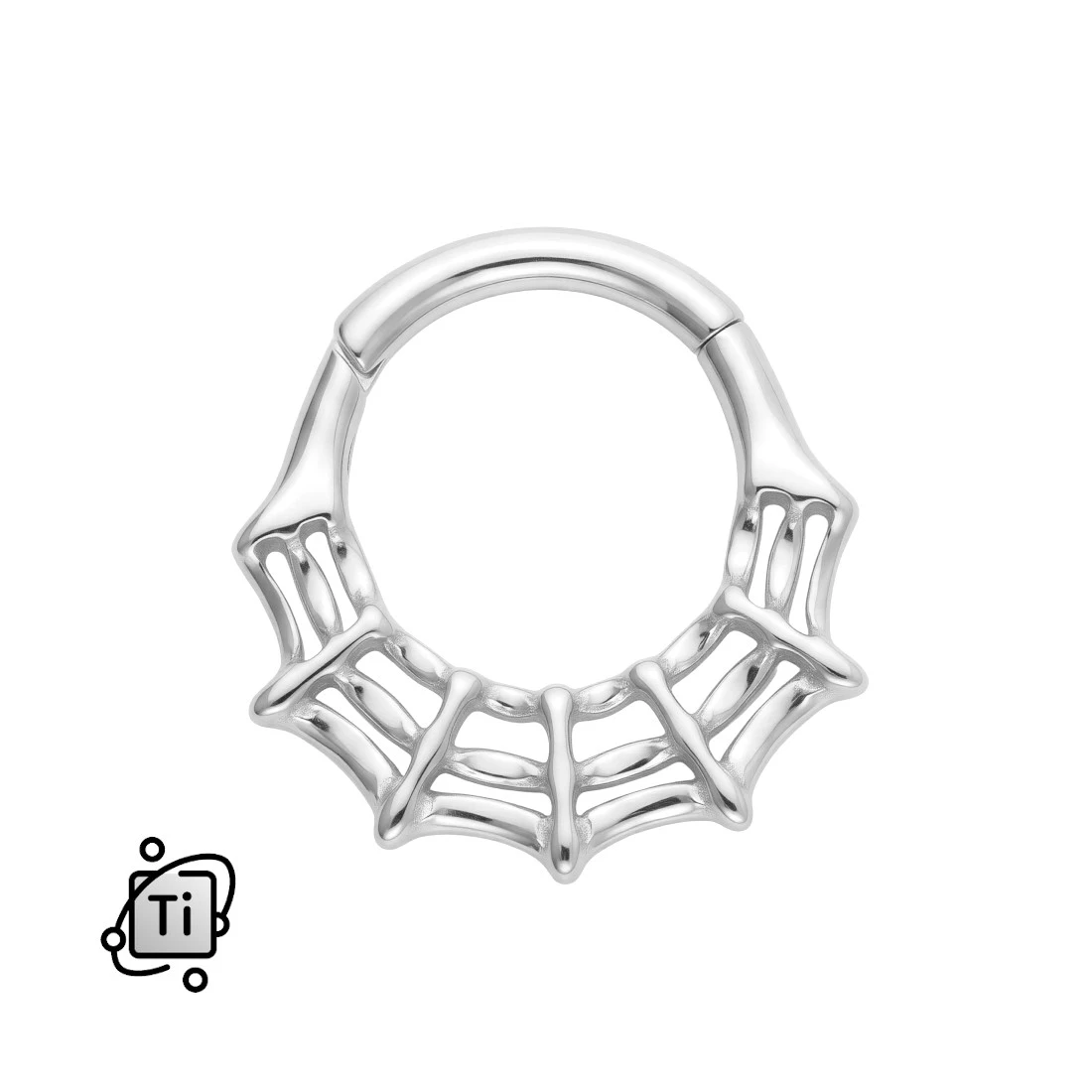Tytanowe kółko clicker z motywem pajęczyny - srebrne