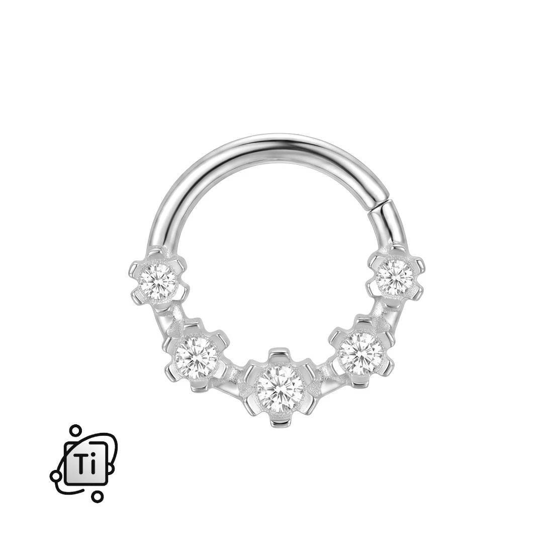 Tytanowe kółko clicker z pięcioma cyrkoniami - srebrne