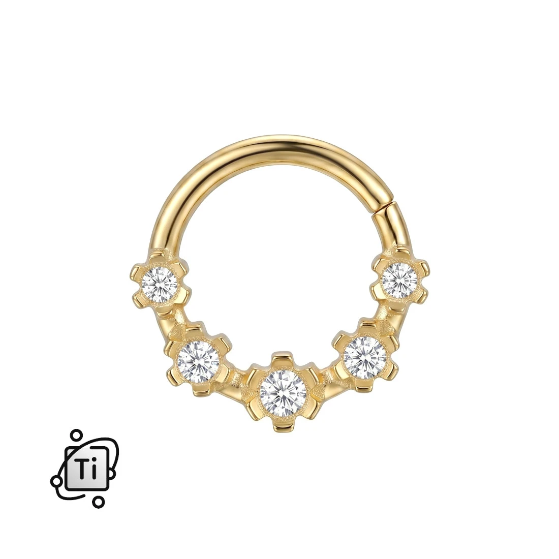 Tytanowe kółko clicker z pięcioma cyrkoniami - złote