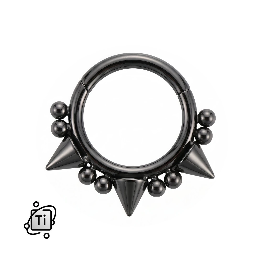 Tytanowy kolczyk clicker z kolcami i kulkami - czarny