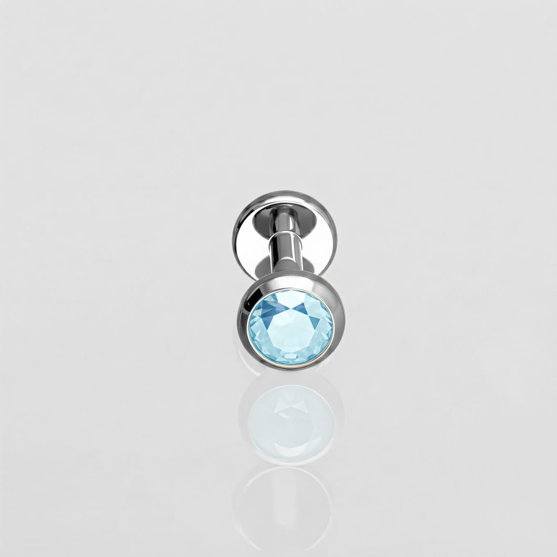 Labret tytanowy INTERNAL z błękitną cyrkonią - srebrny