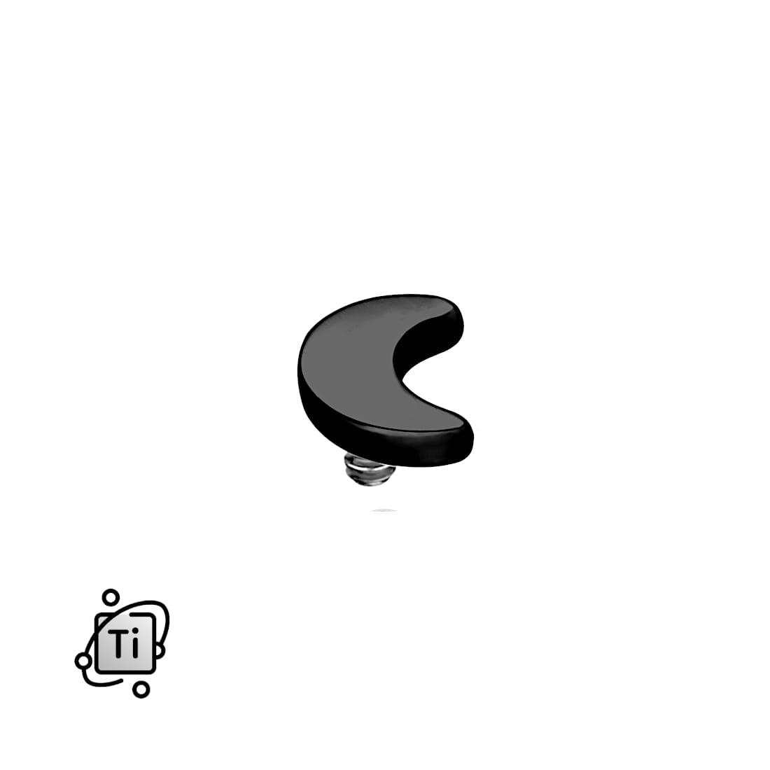 Płaska nakrętka w kształcie półksiężyca do sztang z gwintem wewnętrznym z Tytanu G23, materiału biokompatybilnego, hipoalergicznego i odpornego na korozję. Czarny kolor uzyskano dzięki zastosowaniu trwałej powłoki PVD (Physical Vapor Deposition), która nadaje nakrętce luksusowy wygląd i zwiększa jej odporność na zarysowania.