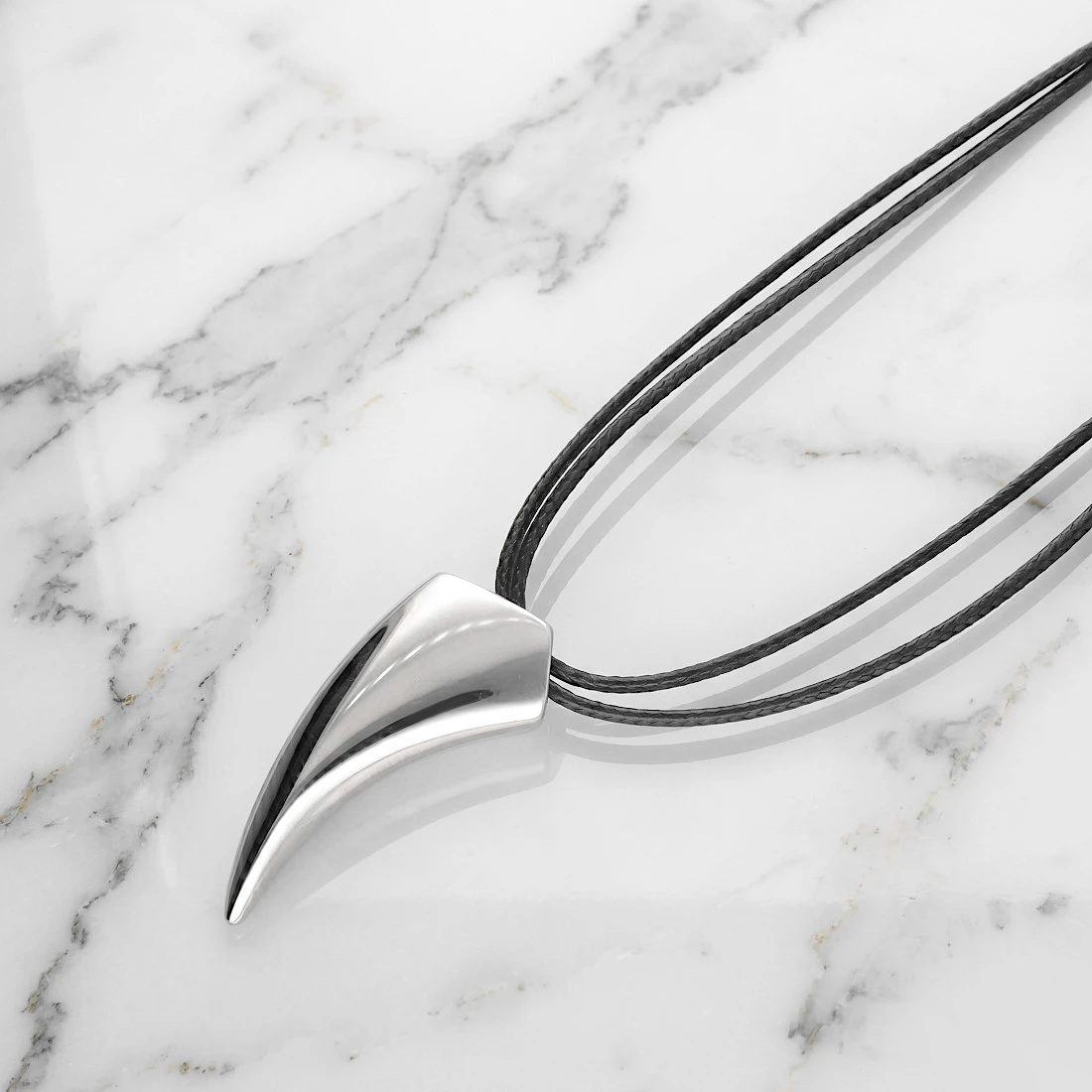 Zawieszka w kształcie kła wykonana z wysokiej jakości stali szlachetnej. Stal ta cechuje się dużą twardością i odpornością na uszkodzenia mechaniczne, takie jak zarysowania czy wgniecenia. Jest także odporna na korozję, nie śniedzieje pod wpływem wody czy powietrza i nie wywołuje reakcji alergicznych, dzięki czemu jest bezpieczna dla skóry.
