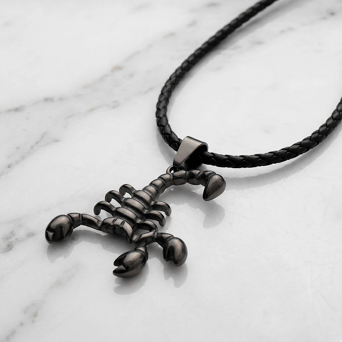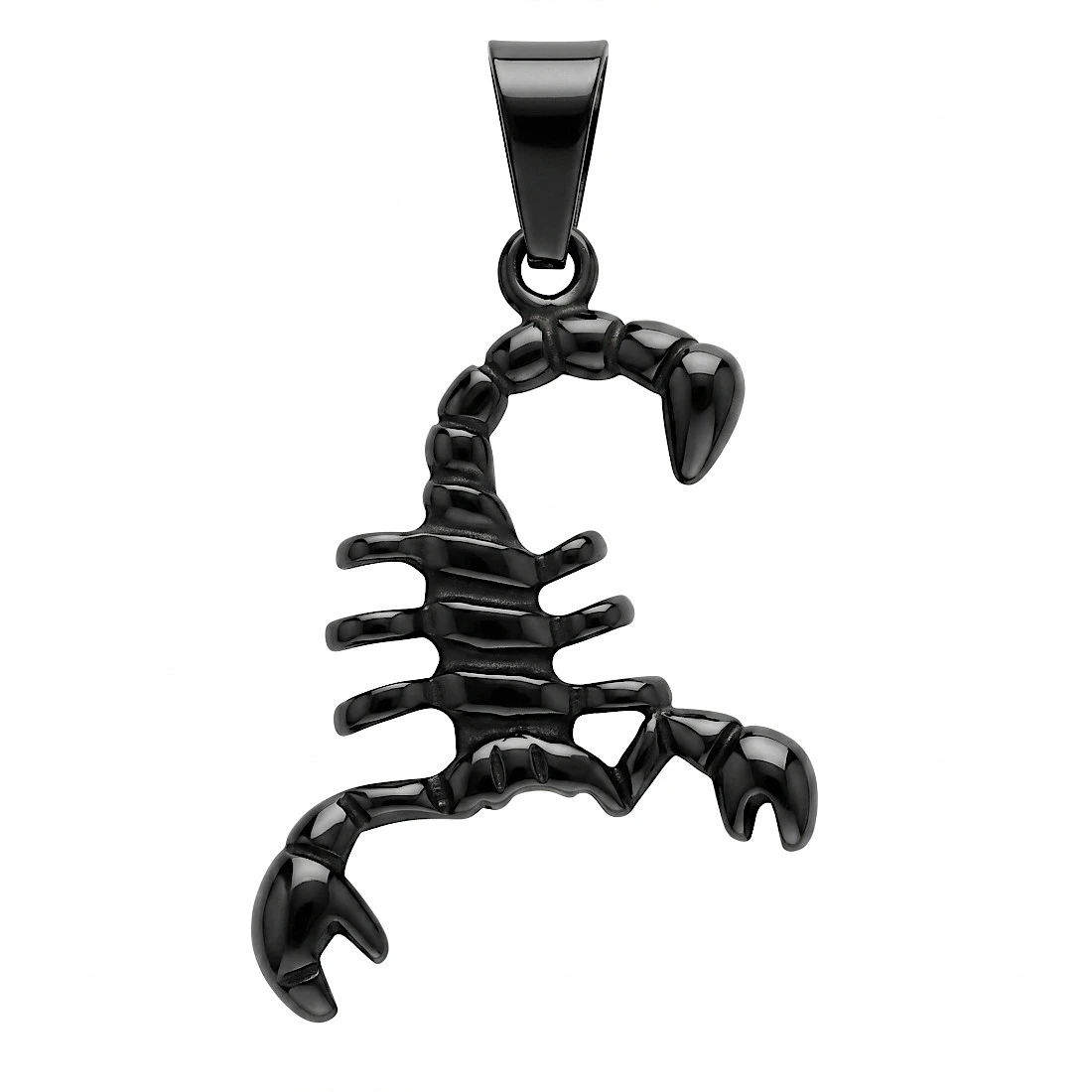 Zawieszka w formie skorpiona wykonana ze stali szlachetnej, materiał charakteryzującego się dużą twardością oraz odpornością na korozję i czynniki zewnętrzne. Powierzchnia została pokryta powłoką PVD w czarnym kolorze. Metoda Physical Vapor Deposition polega na napylaniu próżniowym, co zapewnia wyjątkową trwałość koloru, wysoką odporność na ścieranie oraz chroni powierzchnię przed zarysowaniami. Powłoka jest bezpieczna dla skóry i nie łuszczy się z upływem czasu.