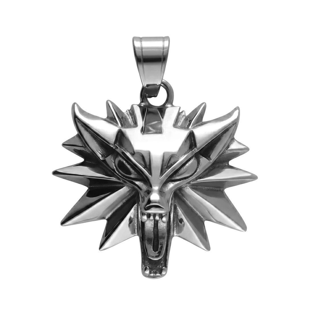 Ma formę wilczej paszczy Witcher Wolf - symbolu Szkoły Wilka z serii gier i książek "Wiedźmin". Przedstawia trójwymiarową, geometryczną formę głowy wilka z otwartą paszczą. Konstrukcja opiera się na wyraźnych, ostrych liniach i fasetowanych płaszczyznach, które tworzą efekt przestrzennej grzywy. Detale takie jak kły oraz oczy zostały precyzyjnie wyprofilowane, a wgłębienia poddano procesowi oksydowania, aby uwypuklić rzeźbiarskie detale i nadać produktowi głębię. Zawieszka jest wyposażona w klasyczne, gładkie uszko o szerokim prześwicie, pozwalające na swobodne dopasowanie różnego rodzaju łańcuchów lub rzemieni.