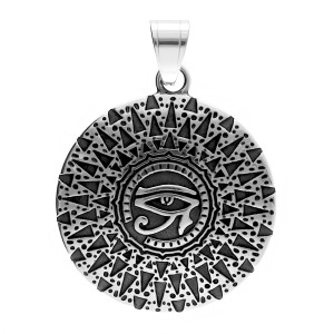 Zawieszka stalowa medalion z OKO HORUSA - srebrna