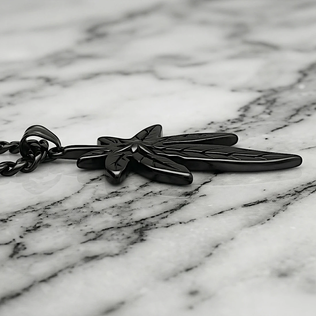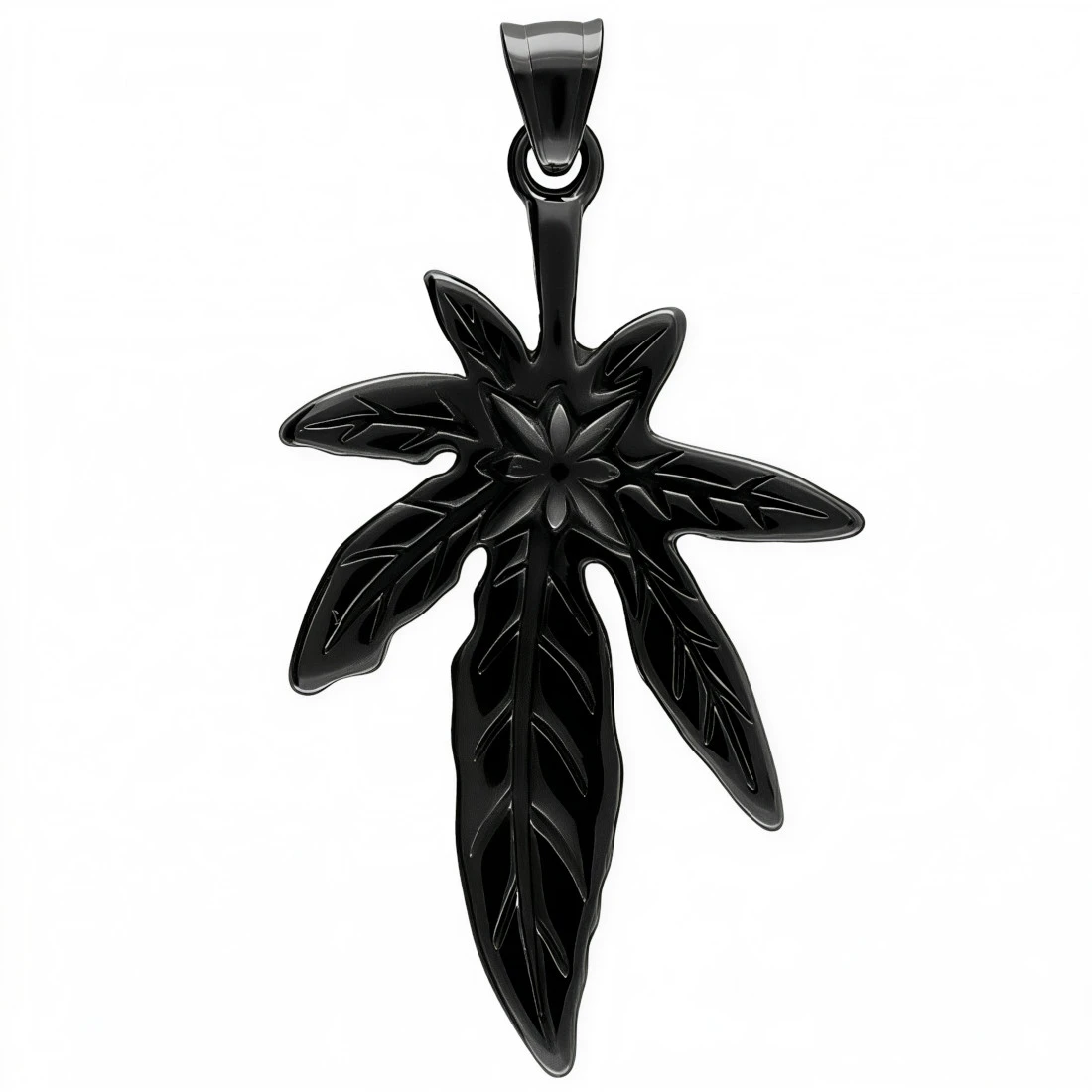 Przedstawia stylizowany liść konopi indyjskich. Ma wyraźny kształt z zaznaczonymi nerwami liścia, dodającymi realizmu i tekstury. Centralnie widoczny jest wzór gwiazdki zbiegający się na środku liścia. Zawieszka ma unikalny wygląd i jest wykonana z dbałością o szczegóły. Jej symbolika sprawia, że jest to oryginalny dodatek, który może wyrażać indywidualny styl i przekonania.
