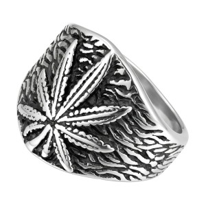 Unikalny design: Motyw liścia cannabis nadaje sygnetowi niepowtarzalny charakter.
