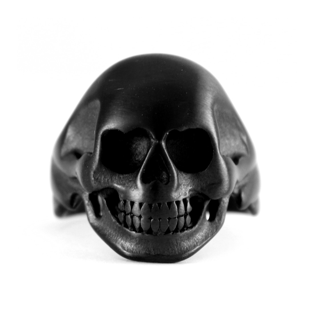 Pierścień ma formę sygnetu z wyraźnie zarysowaną trójwymiarową czaszką. Czaszka, główny motyw ozdobny, zajmujący centralną część pierścienia jest wykonana z dużą precyzją w odwzorowaniu anatomicznych elementów, takich jak głęboko wyżłobione oczodoły, nos, szczęka i zęby.