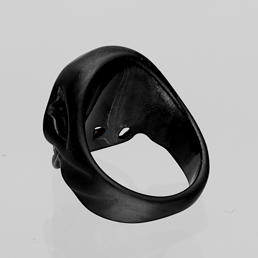 Ozdobny pierścień ze Stali 316L, materiału przyjaznego dla skóry, trwałego, odpornego na korozję. Czarna matowa powłoka uzyskana metodą PVD zapewnia produktowi trwałość i odporność na ścieranie.
