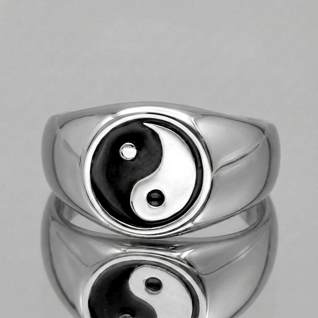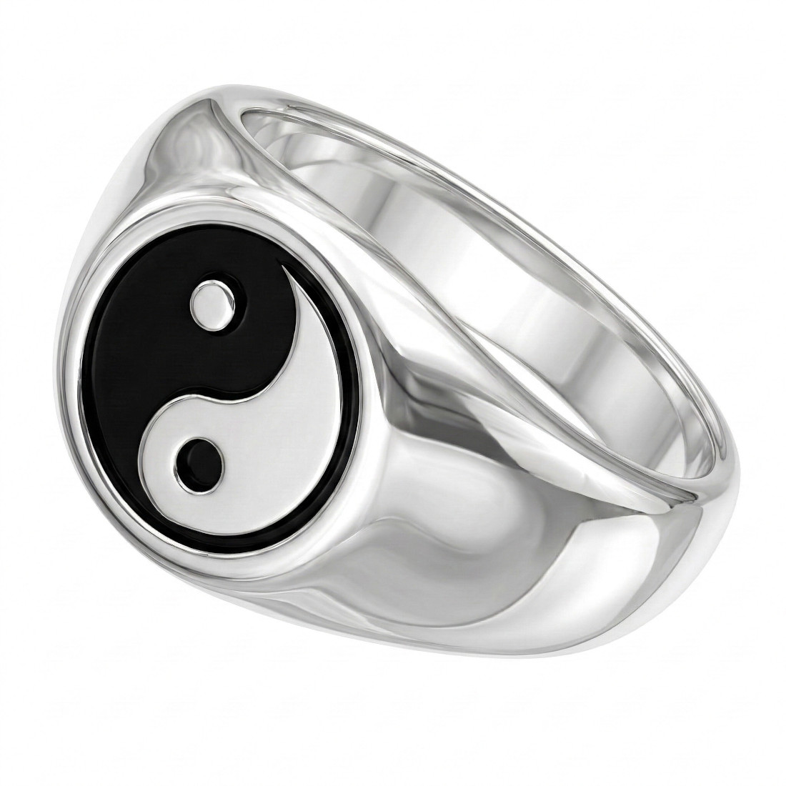 Sygnet ze stali szlachetnej YIN YANG - srebrny