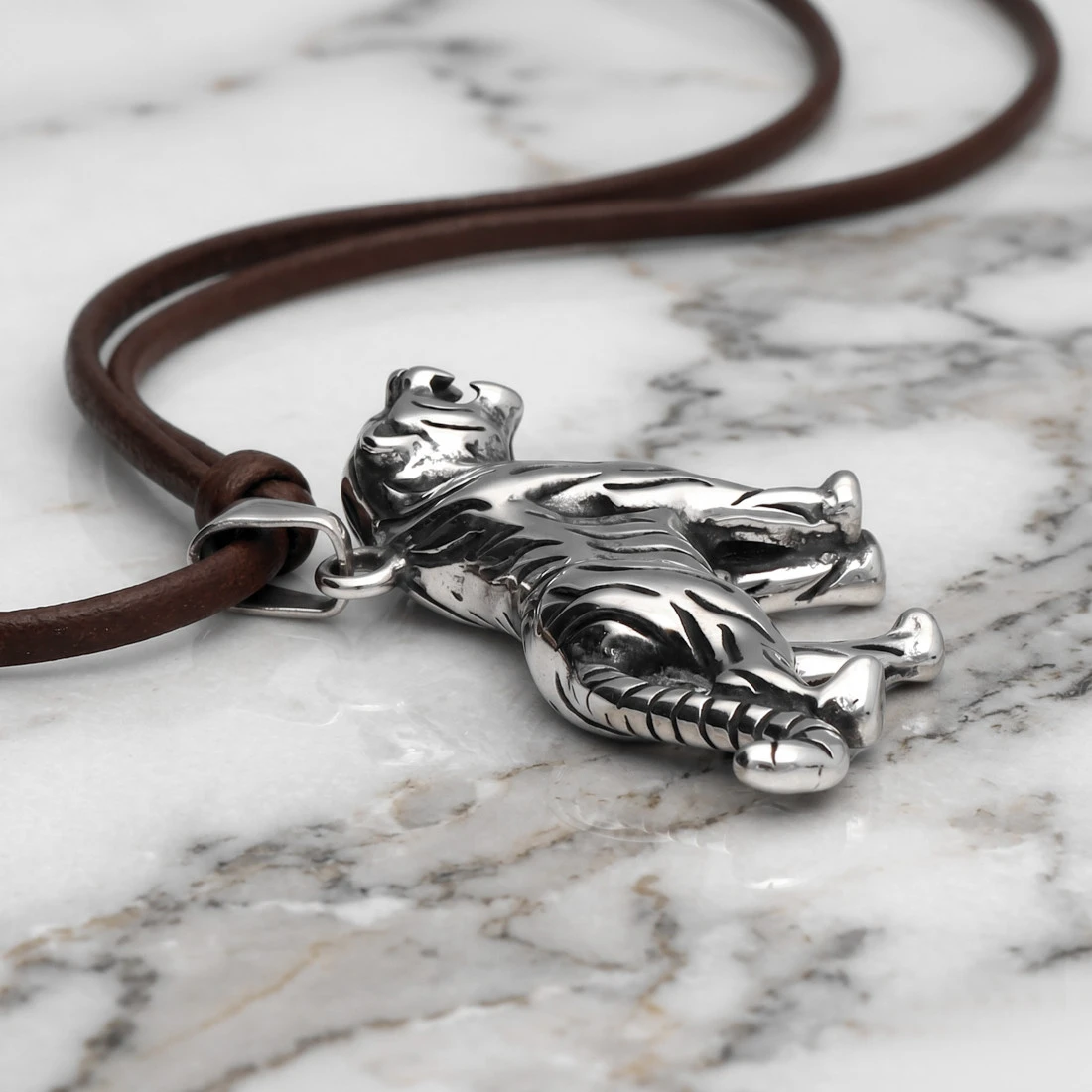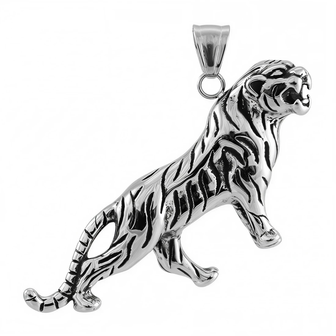 Styl: Tygrys jest przedstawiony w sposób realistyczny, ale z pewnymi uproszczeniami i stylizacją. Prosty, ale wyrazisty design oraz czarny kolor nadają zawieszce nowoczesny charakter.